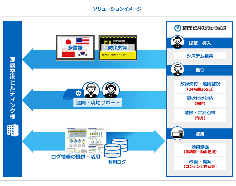 利用客のログを細かく分析し、現場へのフィードバック。 利便性の向上に留まらず、インバウンドや防災対策に加え、 24時間365日の保守体制で、もしもの時も安心。