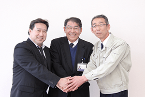 (左から)NTTビジネスソリューションズ長馬、黒川地域行政事務組合の櫻井課長、富士建設工業の青沼様