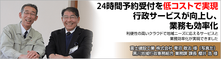 「これまでの電話による予約受付から、インターネットを通じた予約受付への大きな変更でしたが、丁寧な説明により葬祭業者の皆さんにもスムーズに受け入れてもらえました」と黒川地域行政事務組合の櫻井課長は振り返る。富士建設工業の青沼様も「ITに強くない私のような年齢の者でも、すんなりと使うことができました」と、システムの使いやすさを評価する。