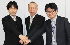 NTTビジネスソリューションズの営業担当者(中央)、