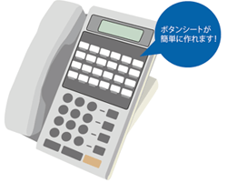 ビジネスフォンの電話機のボタンに割り付けた電話番号や「発信」・「保留」等の機能名を各電話機に表示する際に、手書きあるいは一般的なラベル印刷器ではできないオリジナルのボタンシートを、お客さまのパソコン・カラープリンターで作成することが可能になります。