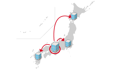災害時などに機能停止やあふれ呼が発生しても、複数拠点のコールセンター間で広域的に業務展開させることにより、効率的で信頼性の高い事業継続を実現します。