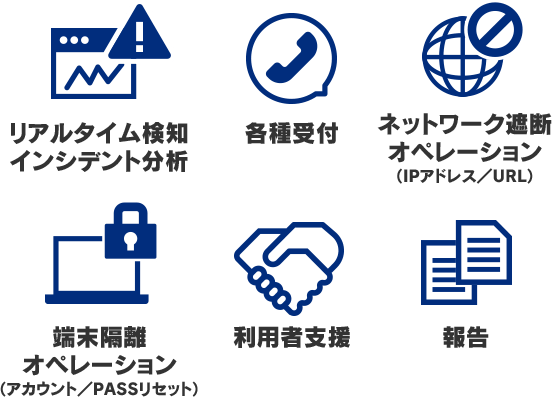 リモートでのインシデント検知&通知に加え、リモートでの遮断措置まで行います。