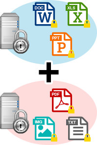 マイクロソフト社のAzure Information Protectionサービスまたは、Active Directory Rights Managementサービス(AD RMS)を拡張して、Office系のファイルだけではなく、PDF、txt、CADなどのさまざまな形式の電子ファイルを暗号化で保護します。