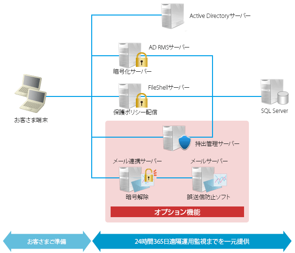 | AD RMSサーバー | 権限管理、暗号化 | |