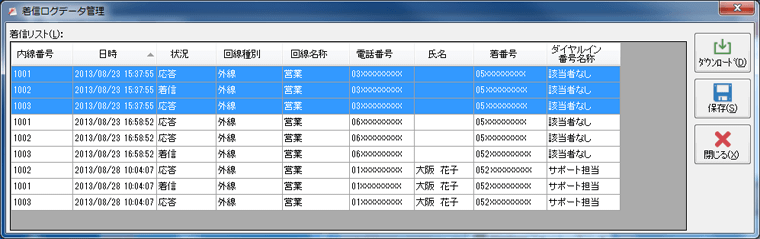 着信ログデータ管理画面