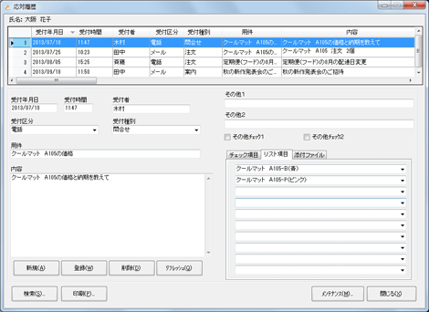 応対履歴画面