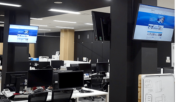 部内周知の手段として、従来のメールやミーティングに加え、メンバー全員に漏れなくタイムリーに情報を伝えるために、サイネージを活用しています。