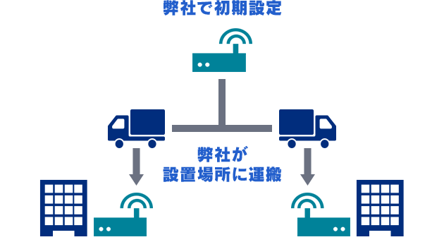 また、無線アクセスポイントを設置する場所まで運搬いたしますので、無線アクセスポイントの設置後、すぐにご利用開始でき、拠点の増加など必要に応じで容易に拡張が可能になります。