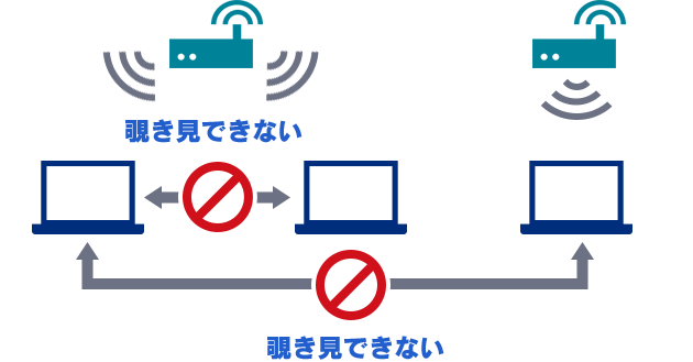 同じ無線アクセスポイントに接続している他のクライアント端末を覗き見できないようにする「無線セパレーター機能」を搭載しています。
