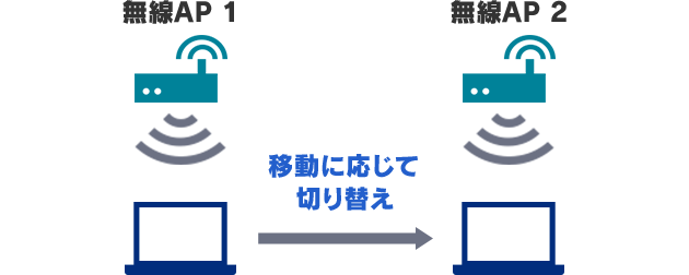 パソコン移動時は無線アクセスポイントを自動的に切り替えて通信できます。