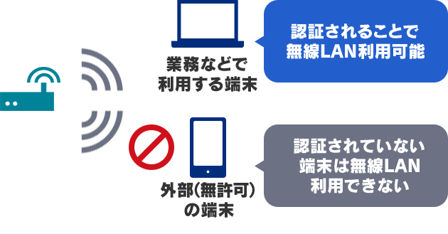 無線LANに接続するユーザーを限定するための各種認証の方式に対応しています。