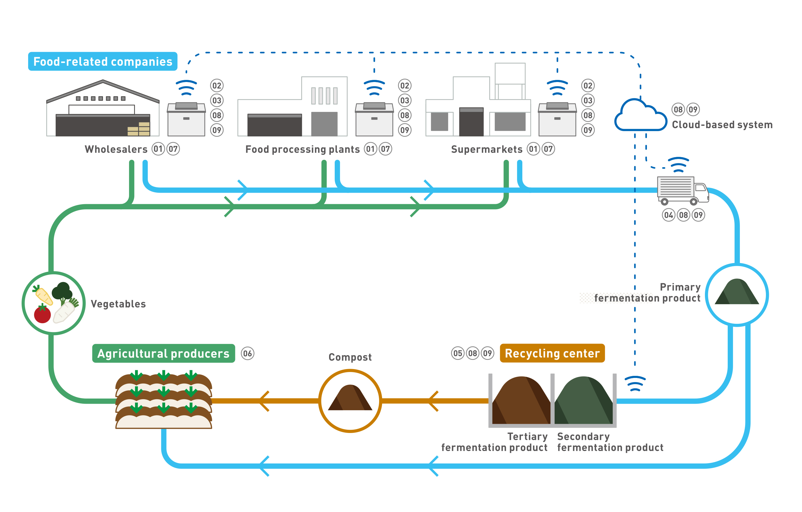 By using smartphones and tablets, food waste volume, fermentation conditions, and more can be known in real time over the Internet.