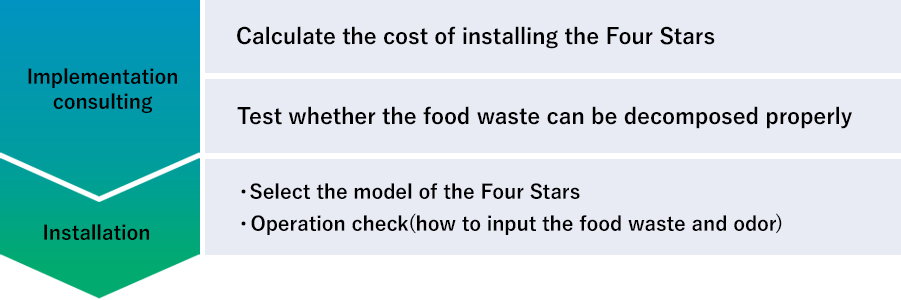 Install the food waste fermentation/decomposition machine for wholesalers and food-related companies. Decompose the food waste into fermentation/decomposition beds(primary fermented product). The fermentation/decomposition beds are transported to the recycling center. The fermentation/decomposition beds turned into fully mature compost through secondary and tertiary fermentation at the recycling center. The compost is supplied to contracted farmers, agricultural cooperatives and agricultural corporations.。