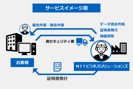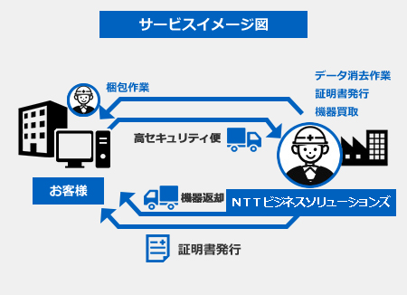 - 回収後、弊社のデータ消去拠点にてデータ消去